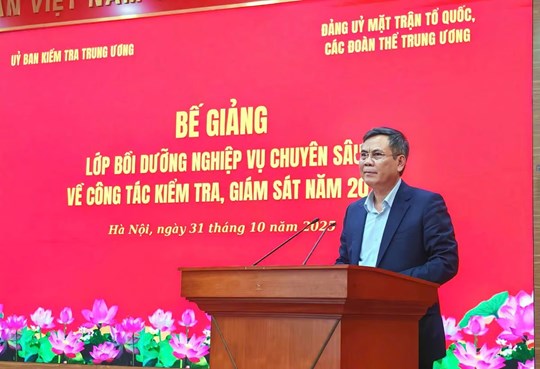 (Mặt trận) - Ngày 31/10, Đảng ủy MTTQ, các đoàn thể Trung ương phối hợp với Ủy ban Kiểm tra Trung ương tổ chức Lễ bế giảng lớp bồi dưỡng nghiệp vụ chuyên sâu về công tác kiểm tra, giám sát năm 2025.