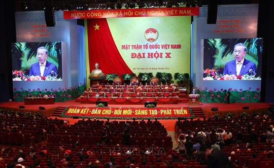 Với chủ đề “Đoàn kết - Dân chủ - Đổi mới - Sáng tạo - Phát triển”, Đại hội đại biểu toàn quốc Mặt trận Tổ quốc Việt Nam lần thứ X, nhiệm kỳ 2024- 2029 đã khai mạc trọng thể sáng 17/10, tại Trung tâm Hội nghị Quốc gia Mỹ Đình, Thủ đô Hà Nội.