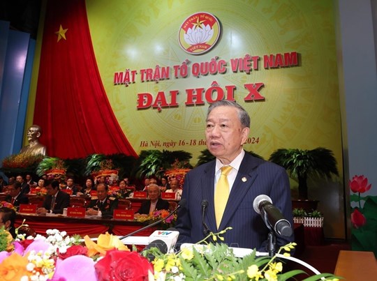 Phát biểu chỉ đạo Đại hội, Tổng Bí thư, Chủ tịch nước Tô Lâm bày tỏ, trong suốt 94 năm qua, Mặt trận Tổ quốc Việt Nam không ngừng lớn mạnh, khẳng định vai trò, sứ mệnh trong việc phát huy truyền thống, sức mạnh đại đoàn kết toàn dân tộc, khích lệ, cổ vũ, động viên nhân dân ta hăng hái tham gia các phong trào thi đua yêu nước, khơi dậy, phát huy các nguồn lực, sức sáng tạo, góp phần thực hiện thành công những nhiệm vụ chiến lược của đất nước trong mỗi giai đoạn lịch sử.