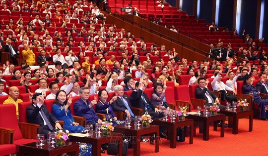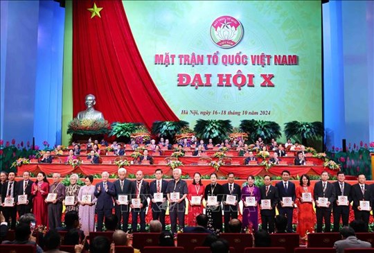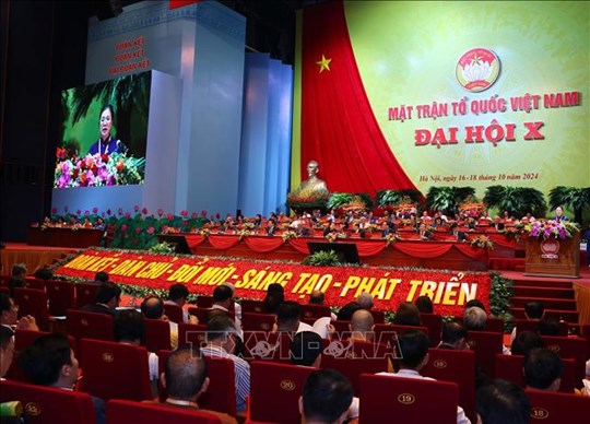 | Quang cảnh Phiên bế mạc Đại hội đại biểu toàn quốc Mặt trận Tổ quốc Việt Nam lần thứ X (18/10/2024). Ảnh: TTXVN |