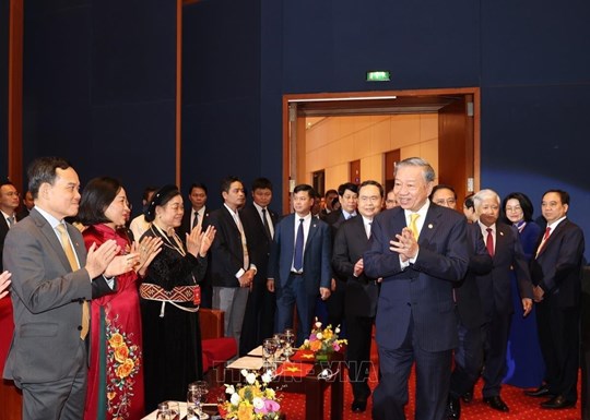 | Tổng Bí thư, Chủ tịch nước Tô Lâm tham gia Đoàn Chủ tịch Đại hội đại biểu toàn quốc MTTQ Việt Nam lần thứ X (17/10/2024). Ảnh: TTXVN |