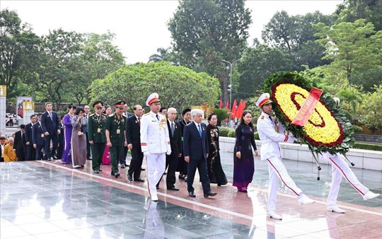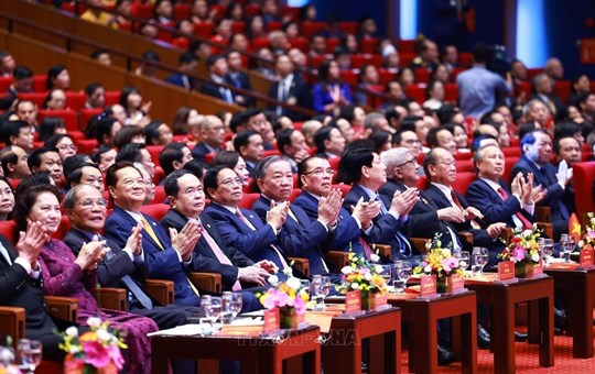 | Tổng Bí thư, Chủ tịch nước Tô Lâm, Thủ tướng Chính phủ Phạm Minh Chính, Chủ tịch Quốc hội Trần Thanh Mẫn cùng nhiều đồng chí Lãnh đạo, nguyên Lãnh đạo Đảng, Nhà nước đến dự phiên khai mạc Đại hội (17/10/2024). Ảnh: TTXVN |