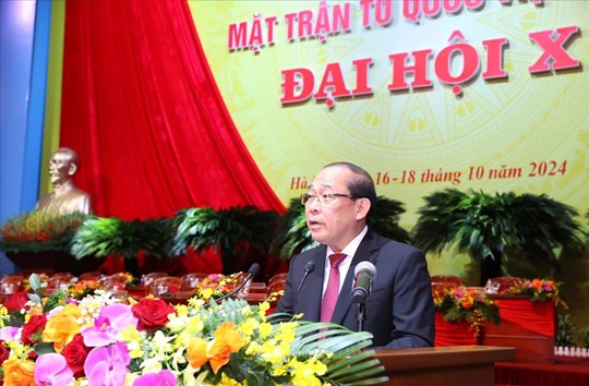 (Mặt trận) - Đại hội đại biểu toàn quốc Mặt trận Tổ quốc Việt Nam lần thứ X, nhiệm kỳ 2024-2029 diễn ra từ ngày 16 đến 18/10/2024, tại Thủ đô Hà Nội. Tham dự Đại hội có 1.052 đại biểu chính thức. Chủ đề của Đại hội là "Đoàn kết - Dân chủ - Đổi mới - Sáng tạo - Phát triển".