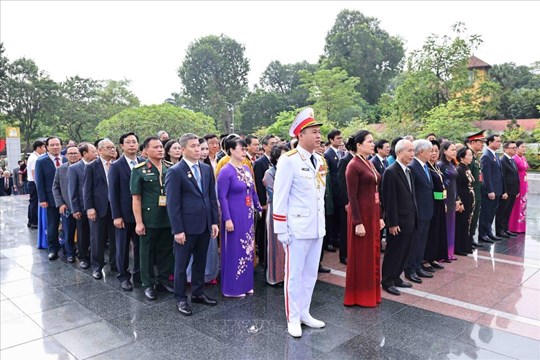 | Các đại biểu dâng hoa tưởng niệm các Anh hùng liệt sĩ (16/10/2024). Ảnh: Minh Đức/TTXVN |