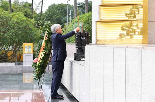 Tiếp đó, Đoàn đến đặt vòng hoa và dâng hương tưởng niệm các Anh hùng Liệt sĩ tại Đài tưởng niệm các Anh hùng Liệt sĩ (đường Bắc Sơn, Hà Nội). Vòng hoa của Đoàn mang dòng chữ: “Đời đời nhớ ơn các Anh hùng, Liệt sĩ”.