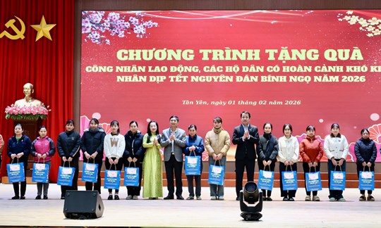 (Mặt trận) - Nhân dịp đón Tết Nguyên đán Bính Ngọ 2026, ngày 1/2, Đoàn công tác của Đảng ủy MTTQ, các đoàn thể Trung ương và lãnh đạo tỉnh Bắc Ninh tới thăm, chúc Tết và tặng quà đoàn viên, công nhân lao động, các hộ gia đình hoàn cảnh khó khăn tại xã Tân Yên.