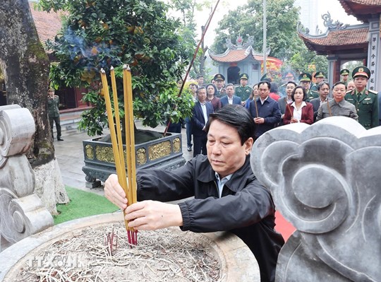 | Chủ tịch nước Lương Cường và đoàn công tác dâng hương tại đền Thượng (Lào Cai) cầu cho quốc thái dân an. Ảnh: Lâm Khánh/TTXVN |