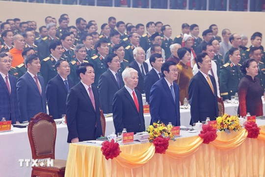 Chủ tịch nước Lương Cường, Chủ tịch Hội đồng Quốc phòng và An ninh, Thống lĩnh các lực lượng vũ trang, dự và phát biểu chỉ đạo tại Lễ kỷ niệm.Tổng Bí thư Tô Lâm; Thủ tướng Chính phủ Phạm Minh Chính; Chủ tịch Quốc hội Trần Thanh Mẫn; Thường trực Ban Bí thư Trần Cẩm Tú gửi lẵng hoa chúc mừng.