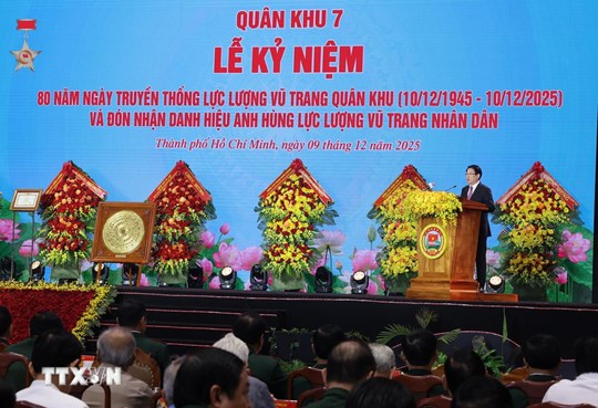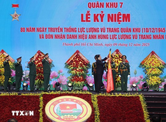 (Mặt trận) - Sáng 9/12, tại Thành phố Hồ Chí Minh, Đảng ủy-Bộ Tư lệnh Quân khu 7 long trọng tổ chức Lễ kỷ niệm 80 năm Ngày truyền thống Lực lượng vũ trang Quân khu 7 (10/12/1945 - 10/12/2025) và đón nhận danh hiệu Anh hùng Lực lượng Vũ trang Nhân dân.