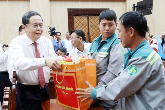 | Chủ tịch Quốc hội Trần Thanh Mẫn trao quà tặng gia đình chính sách, công nhân, người lao động có hoàn cảnh khó khăn |