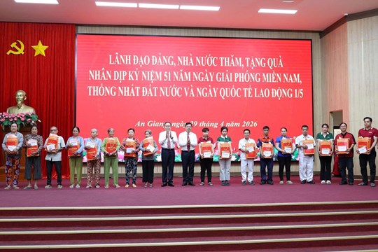 (Mặt trận) - Sáng 29/4, tại tỉnh An Giang, nhân kỷ niệm 51 năm Ngày Giải phóng miền Nam, thống nhất đất nước (30/4/1975 - 30/4/2026), Ủy viên Bộ Chính trị, Chủ tịch Quốc hội Trần Thanh Mẫn và Đoàn công tác đã về thăm, tặng quà gia đình chính sách, công nhân, người lao động có hoàn cảnh khó khăn trên địa bàn tỉnh.