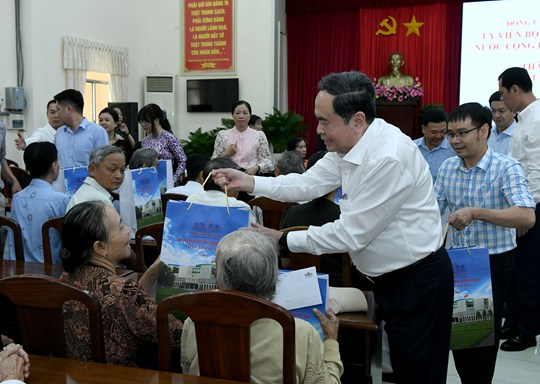 | Chủ tịch Quốc hội Trần Thanh Mẫn trao quà tặng các gia đình chính sách và hộ nghèo trên địa bàn phường Bình Thủy, TP. Cần Thơ |