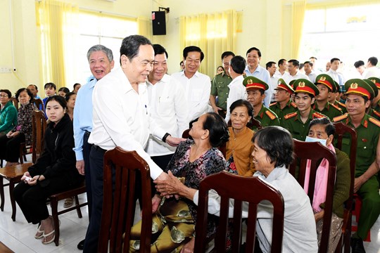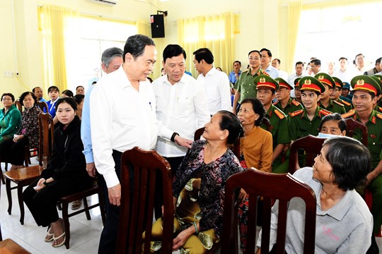 Chủ tịch Quốc hội Trần Thanh Mẫn trao quà tặng gia đình chính sách, người có công, hộ nghèo, hộ cận nghèo, hộ có hoàn cảnh khó khăn trên địa bàn