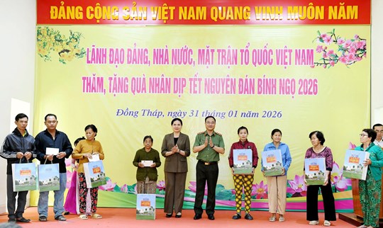 (Mặt trận) - Sáng 31/1, tại trụ sở xã Ba Sao, tỉnh Đồng Tháp, trong không khí phấn khởi chào mừng thành công của Đại hội XIV của Đảng, kỷ niệm 96 năm Ngày thành lập Đảng và chuẩn bị đón Tết Bính Ngọ 2026, Ủy viên Bộ Chính trị, Chủ tịch Quốc hội, Chủ tịch Hội đồng Bầu cử quốc gia Trần Thanh Mẫn và Đoàn công tác đã thăm, tặng quà các đối tượng chính sách, người có hoàn cảnh khó khăn, cán bộ, chiến sĩ lực lượng vũ trang trên địa bàn.