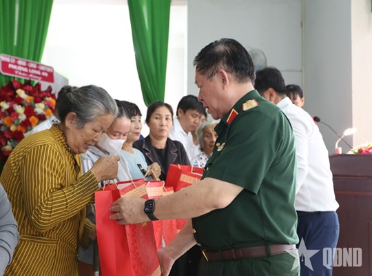 Dịp này, Đại tướng Nguyễn Trọng Nghĩa đã trao quà của Quân ủy Trung ương, Bộ Quốc phòng tặng các gia đình chính sách, hộ nghèo, cận nghèo trên địa bàn.