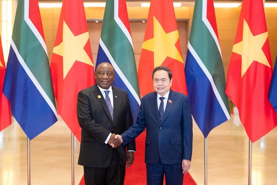 | Chủ tịch Quốc hội Trần Thanh Mẫn hội kiến Tổng thống Cộng hòa Nam Phi Cyril Ramaphosa tại chuyến thăm cấp Nhà nước Việt Nam, ngày 24/10/2025. Ảnh: Phạm Thắng |