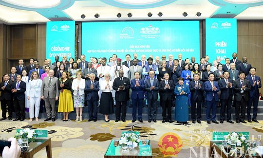 | Chủ tịch Quốc hội Trần Thanh Mẫn và các đại biểu chụp ảnh lưu niệm tại diễn đàn Hợp tác Pháp ngữ về nông nghiệp bền vững, ngày 21/1/2025. Ảnh: Lâm Hiển |