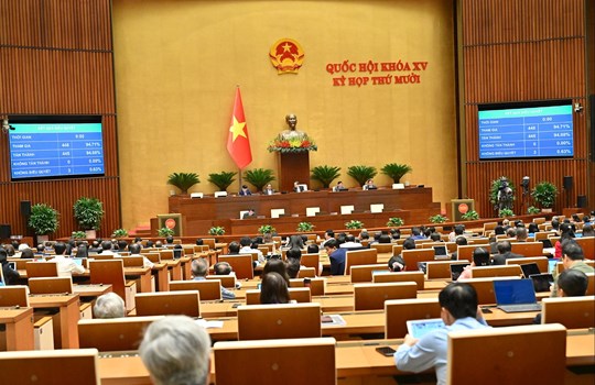 Quốc hội biểu quyết thông qua Luật sửa đổi, bổ sung một số điều của Luật Điều ước quốc tế, ngày 10/12/2025. Ảnh: Phạm Thắng