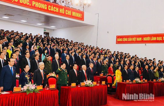 Các đồng chí lãnh đạo Đảng, Nhà nước và đại biểu tỉnh dự Đại hội. Ảnh: Báo Ninh Bình |