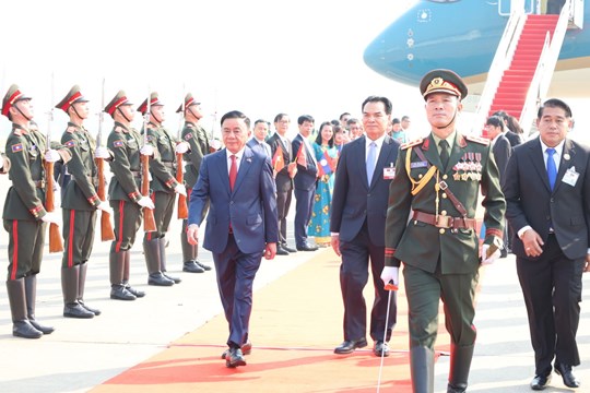 Lễ đón đồng chí Thường trực Ban Bí thư Trần Cẩm Tú và Đoàn đại biểu cấp cao Việt Nam tại sân bay quốc tế Wattay, Thủ đô Viêng Chăn.