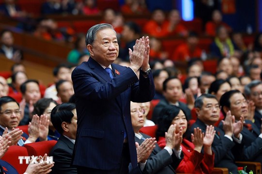 | Tổng Bí thư Tô Lâm cùng các đại biểu tham dự Đại hội Thi đua yêu nước toàn quốc lần thứ XI. (Ảnh: Dương Giang/TTXVN) |