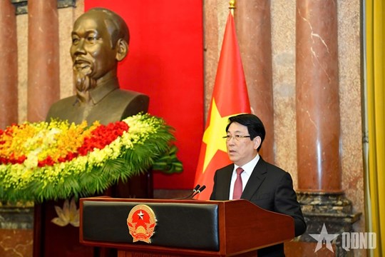 Đánh giá tình hình đó đang đặt ra những yêu cầu mới ngày càng cao đối với Lực lượng vũ trang trong nhiệm vụ xây dựng và bảo vệ Tổ quốc, Chủ tịch nước đề nghị các đồng chí vừa được bổ nhiệm, thăng quân hàm tiếp tục phát huy truyền thống vẻ vang của Quân đội nhân dân Việt Nam anh hùng và phẩm chất Bộ đội Cụ Hồ; tiếp tục giữ gìn đạo đức cách mạng, tuyệt đối trung thành với Đảng, Tổ quốc và nhân dân; đoàn kết, gắn bó máu thịt với cán bộ, chiến sĩ và nhân dân; tiếp tục học tập, tu dưỡng, rèn luyện để luôn xứng đáng là người lãnh đạo, chỉ huy tài năng, mẫu mực, nỗ lực phấn đấu, khắc phục khó khăn, thử thách, hoàn thành xuất sắc mọi nhiệm vụ mà Đảng, Nhà nước và nhân dân tin tưởng giao phó.