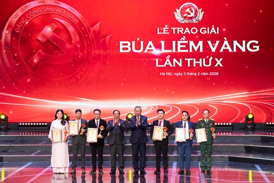 (Mặt trận) - Kỷ niệm 96 năm Ngày thành lập Đảng Cộng sản Việt Nam, mừng Đảng, mừng Đất nước và chào đón Xuân mới Bính Ngọ 2026, tối 3/2, tại Nhà hát Hồ Gươm (Hà Nội), Ban Tổ chức Trung ương chủ trì, phối hợp với Tạp chí Cộng sản, Báo Nhân Dân, Đài Truyền hình Việt Nam, Hội Nhà báo Việt Nam đã tổ chức Lễ tuyên dương Bí thư Chi bộ xuất sắc và trao Giải báo chí toàn quốc về xây dựng Đảng - giải Búa liềm Vàng lần thứ X.