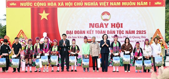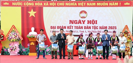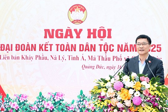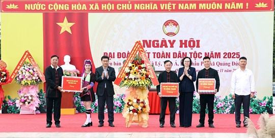 (Mặt trận) - Sáng 16/11, Ủy viên Trung ương Đảng, Phó Chủ tịch Quốc hội Vũ Hồng Thanh đã về dự, chung vui ngày hội Đại đoàn kết toàn dân tộc năm 2025 tại Liên khu dân cư bản Kháy Phầu, Nà lý, Tình Á, Mả Thàu Phố, xã Quảng Đức, tỉnh Quảng Ninh.