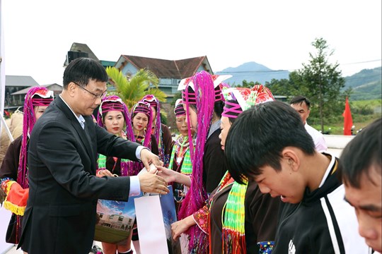| Phó Chủ tịch Quốc hội Vũ Hồng Thanh trao quà tặng Liên khu dân cư bản Kháy Phầu, Nà lý, Tình Á, Mả Thàu Phố |