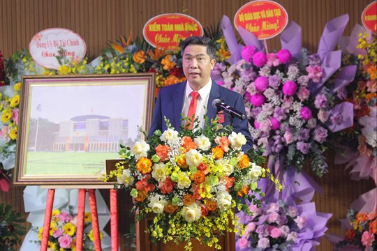 | Giám đốc Học viện Tài chính, NGƯT. PGS.TS Nguyễn Đào Tùng đọc diễn văn tại buổi lễ |