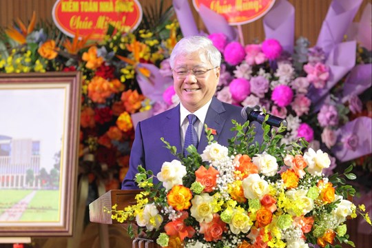 | Phó Chủ tịch Thường trực Quốc hội Đỗ Văn Chiến tặng lẵng hoa chúc mừng Học viện Tài chính |
