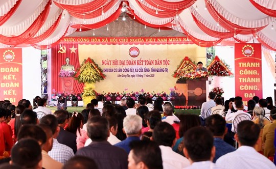 (Mặt trận) - Ngày 14/11, trong không khí vui tươi, phấn khởi của cả nước kỷ niệm 95 năm Ngày truyền thống Mặt trận Tổ quốc Việt Nam (18/11/1930-18/11/2025) và cũng là Ngày hội Đại đoàn kết toàn dân tộc, Phó Thủ tướng Chính phủ Nguyễn Chí Dũng dự và phát biểu Ngày hội Đại đoàn kết toàn dân tộc tại Khu dân cư thôn Liêm Công Tây, xã Cửa Tùng, tỉnh Quảng Trị.