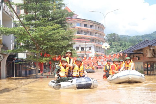 Huy động các lực lượng quân sự, công an, dân quân tự vệ, lực lượng xung kích cơ sở tổ chức tập trung triển khai lực lượng, phương tiện, vật tư để thực hiện sơ tán người và tài sản khu vực bị ngập nước, sạt lở; thực hiện công tác cứu hộ, cứu nạn.