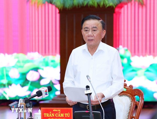 | Đồng chí Trần Cẩm Tú, Uỷ viên Bộ Chính trị, Thường trực Ban Bí thư, Trưởng Đoàn Kiểm tra, giám sát số 12 của Bộ Chính trị phát biểu chỉ đạo. Ảnh: Phương Hoa/TTXVN |