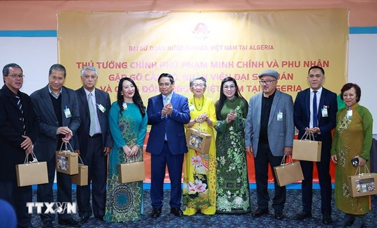 Chuyển lời thăm hỏi của lãnh đạo Đảng, Nhà nước, Tổng Bí thư Tô Lâm đến cộng đồng người Việt Nam tại Algeria, Thủ tướng Chính phủ cho biết, Việt Nam và Algeria tuy cách xa nhau về địa lý nhưng đã có mối quan hệ từ lâu đời, đặc biệt là trong quá trình cùng đấu tranh để giành và bảo vệ độc lập dân tộc của mỗi nước.