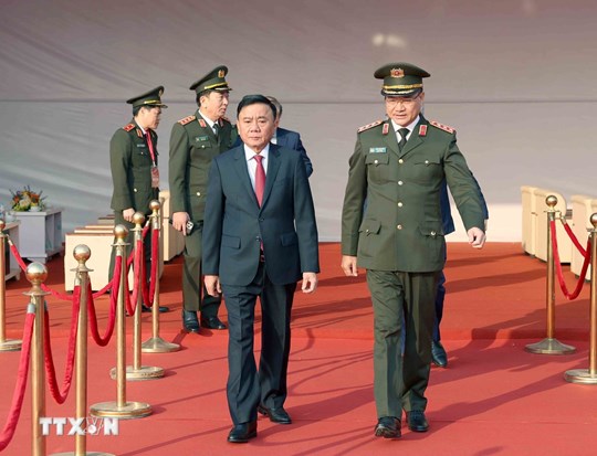 | Thường trực Ban Bí thư Trần Cẩm Tú dự Lễ xuất quân, diễn tập phương án bảo đảm an ninh, trật tự Đại hội đại biểu toàn quốc lần thứ XIV của Đảng. Ảnh: Phương Hoa/TTXVN |