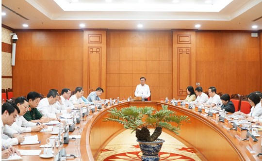 | Thường trực Ban Bí thư Trần Cẩm Tú chủ trì giao ban. |
