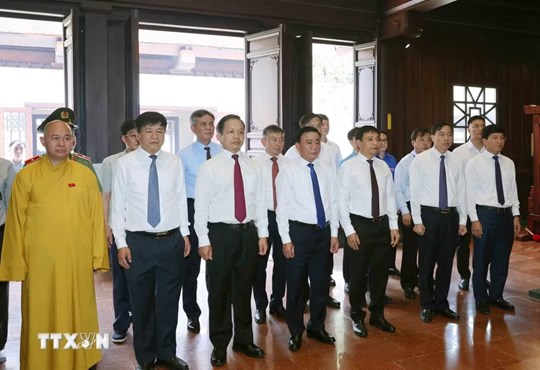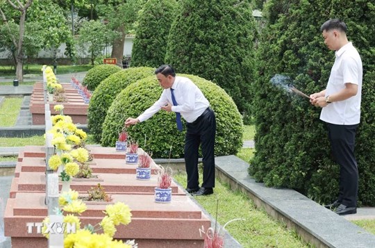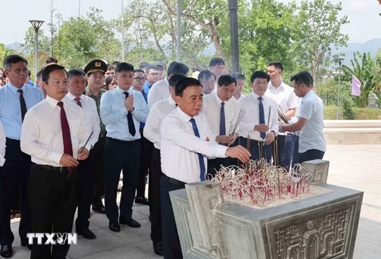 Sau đó, Thường trực Ban Bí thư đã tới các phần mộ thắp hương tưởng nhớ các anh hùng, liệt sỹ đã anh dũng chiến đấu hy sinh vì độc lập, tự do của Tổ quốc, vì chủ nghĩa xã hội, vì hạnh phúc của nhân dân.