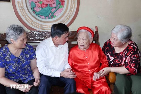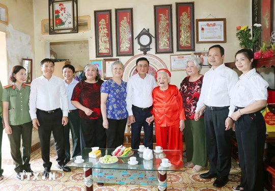 Thường trực Ban Bí thư đã ân cần hỏi thăm sức khỏe, gửi lời tri ân đến mẹ và lời chúc mẹ sống vui khỏe, tiếp tục là điểm tựa tinh thần cho con cháu.