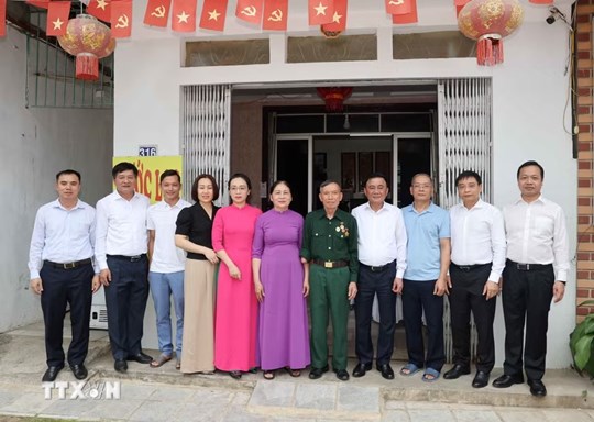 | Thường trực Ban Bí thư Trần Cẩm Tú thăm gia đình mẹ Vũ Thị Dần (mẹ liệt sỹ Đỗ Văn Thứ), phường Điện Biên Phủ. (Ảnh: Phương Hoa/TTXVN) |