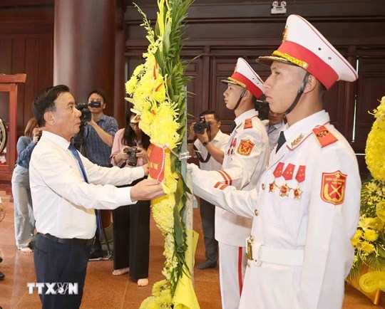 | Thường trực Ban Bí thư Trần Cẩm Tú dâng hoa tại Nghĩa trang liệt sỹ Quốc gia A1. (Ảnh: Phương Hoa/TTXVN) |