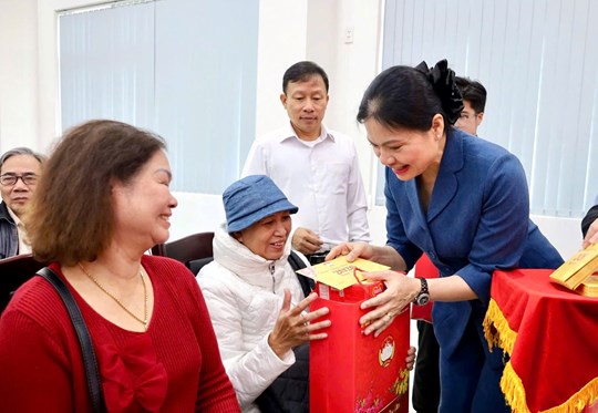 Tại Hội trường Ủy ban Mặt trận Tổ quốc Việt Nam phường Hải Châu, thành phố Đà Nẵng, Thường trực Ban Bí thư Trần Cẩm Tú và Đoàn gặp mặt, chúc Tết, tặng quà 60 gia đình chính sách, người có công với cách mạng, công nhân lao động có hoàn cảnh khó khăn, hộ nghèo, neo đơn, gia đình đặc biệt khó khăn trên địa bàn thành phố.