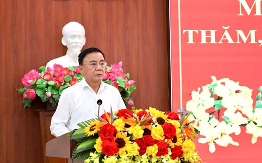 Thường trực Ban Bí thư đã ân cần thăm hỏi sức khỏe, chúc Mẹ Việt Nam Anh hùng Nguyễn Thị Sự, Anh hùng Lực lượng vũ trang nhân dân Huỳnh Thúc Bá luôn khỏe mạnh, tiếp tục động viên con cháu phát huy truyền thống yêu nước, cách mạng, có những đóng góp xây dựng, phát triển quê hương, đất nước.