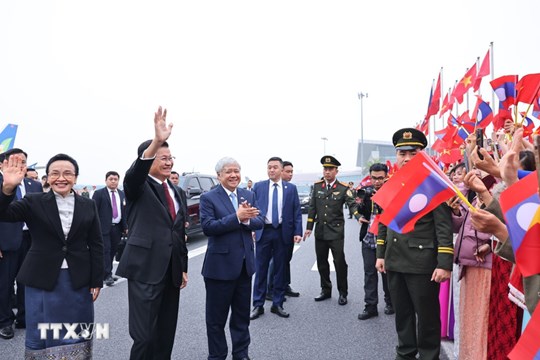 (Mặt trận) - Sáng 26/1, Tổng Bí thư Ban Chấp hành Trung ương Đảng Nhân dân cách mạng Lào, Chủ tịch nước Cộng hòa Dân chủ Nhân dân Lào Thongloun Sisoulith và Phu nhân Naly Sisoulith đến Hà Nội, bắt đầu thăm cấp Nhà nước tới Việt Nam từ ngày 26-27/1, theo lời mời của Tổng Bí thư Ban Chấp hành Trung ương Đảng Cộng sản Việt Nam Tô Lâm và Phu nhân.