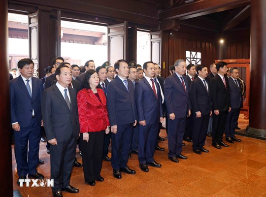 | Tổng Bí thư Tô Lâm và đoàn công tác Trung ương thành kính tưởng niệm Chủ tịch Hồ Chí Minh. (Ảnh: Thống Nhất/ TTXVN) |