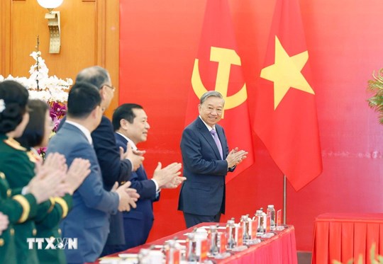 | Tổng Bí thư Tô Lâm và các đại biểu. Ảnh: Thống Nhất/TTXVN |
