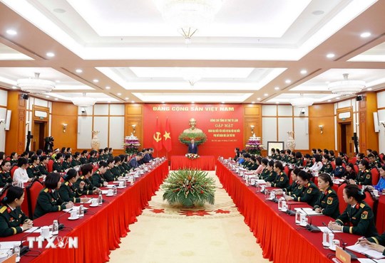 Tổng Bí thư tin tưởng, Phụ nữ Quân đội sẽ tiếp tục phát huy truyền thống “Yêu nước, đoàn kết, sáng tạo, trung hậu, đảm đang”, đạt được nhiều thành tích xuất sắc, cống hiến nhiều hơn nữa vào sự nghiệp xây dựng quân đội, củng cố quốc phòng và bảo vệ Tổ quốc, xứng đáng với bản chất tốt đẹp của Quân đội nhân dân Việt Nam anh hùng.