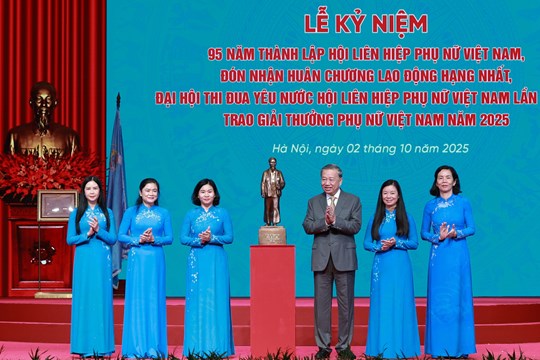 (Mặt trận) - Chiều 2/10, tại Hà Nội, Trung ương Hội Liên hiệp Phụ nữ Việt Nam đã tổ chức Lễ kỷ niệm 95 năm thành lập Hội Liên hiệp Phụ nữ Việt Nam, đón nhận Huân chương Lao động hạng Nhất; Đại hội Thi đua yêu nước Hội Liên hiệp Phụ nữ Việt Nam lần thứ V và trao Giải thưởng Phụ nữ Việt Nam năm 2025.