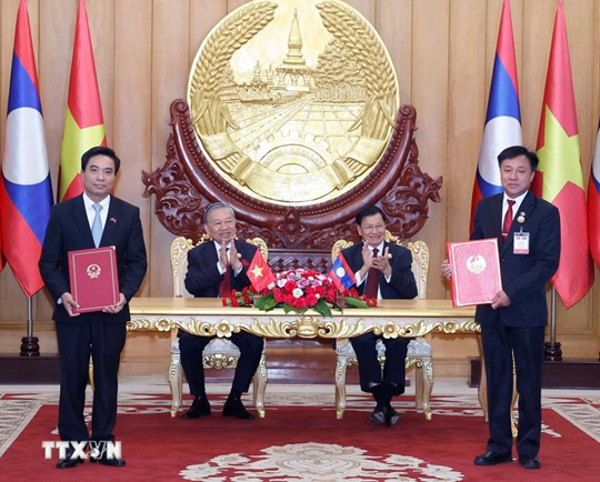 Kết thúc hội đàm, hai nhà lãnh đạo đã chứng kiến lễ trao 12 văn kiện hợp tác quan trọng giữa các bộ, ngành, địa phương và cơ quan hữu quan của hai nước trên các lĩnh vực trụ cột gồm: quốc phòng, an ninh, y tế, tư pháp, giáo dục-đào tạo, tài chính-ngân hàng, hạ tầng chiến lược…; tạo nền tảng pháp lý và động lực mới để đưa quan hệ hợp tác Việt Nam – Lào tiếp tục phát triển sâu sắc, thực chất và hiệu quả hơn nữa trong giai đoạn mới.