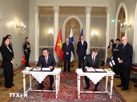 Trong khuôn khổ chuyến thăm chính thức của Tổng Bí thư Tô Lâm và Phu nhân cùng Đoàn đại biểu cấp cao Việt Nam tới Cộng hòa Phần Lan, trưa 21/10 (theo giờ địa phương), tại Phủ Tổng thống, Tổng Bí thư Tô Lâm và Tổng thống Cộng hòa Phần Lan Alexander Stubb đã chứng kiến Lễ ký kết các văn kiện hợp tác song phương Việt Nam - Phần Lan.